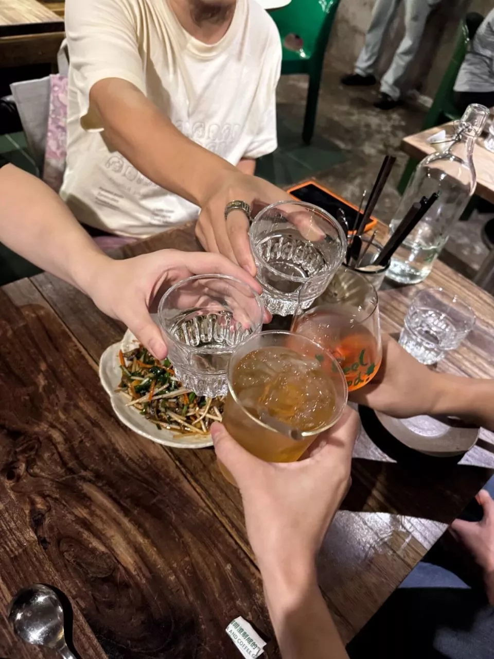 饭局结束差不多是晚上10点,彼此添加了微信好友后,那位喜欢铁人三项的女生,说自己有个想法,要不要一起去看最近上映的电影《好东西》,再来上一杯便利店调酒,她说这是自己一直想做的事。火火和一位同样在饭局上聊的意犹未尽的女孩立刻应声同意。她们打车去便利店买了冰杯,调了三杯酒,又去了隔壁的影院。