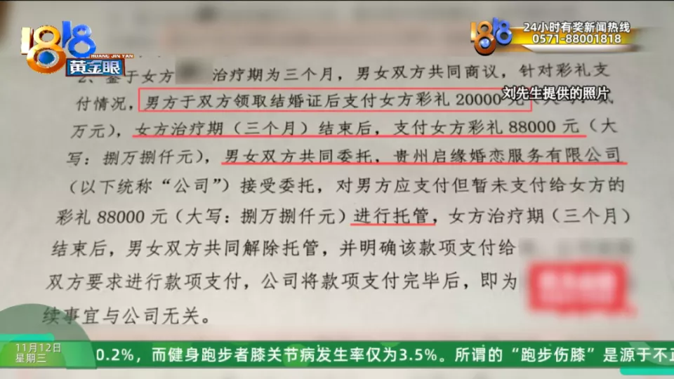 张女士:我从来没有去相亲过,第一次去相亲,我在那里面然后都是一片空白。彩礼还有一些没给,他们签那个合同,我没有注意看。