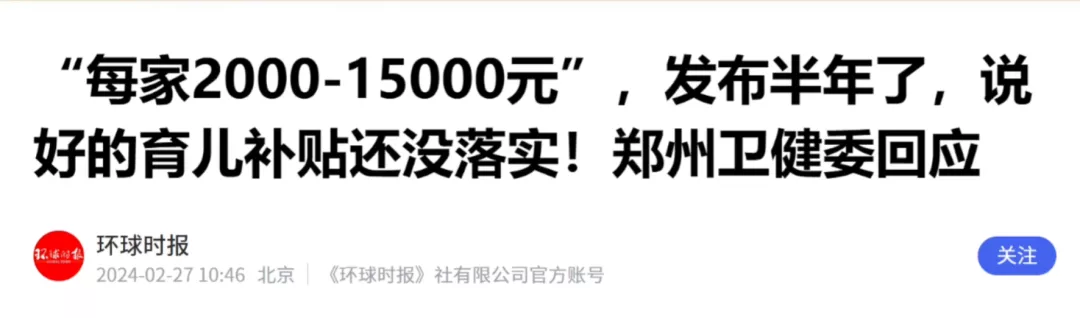 “安徽省二胎补贴刚轮到我的时候,卫健委打电话说省内所有二胎补贴全部追回,已发放的从育儿津贴里扣除,没发放的直接截回。”