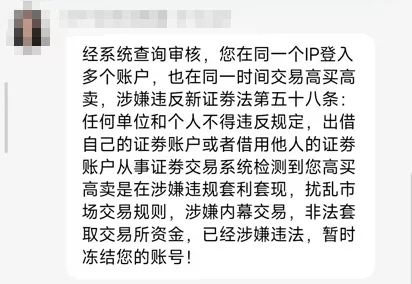 和许多诈骗案件相似,当李先生准备提现时,“客服”突然告知李先生其账户因“同一IP登录多个账户”“高买高卖”等操作,已涉嫌违法,账户被冻结。