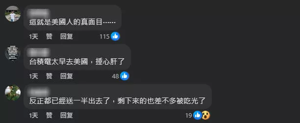 有网民担忧台湾未来,“台湾如果没有台积电就真的什么都不是了”;有人怒喷罗唯仁“卖台”,“台湾内鬼太多”,同时要求台积电“深刻检讨”……