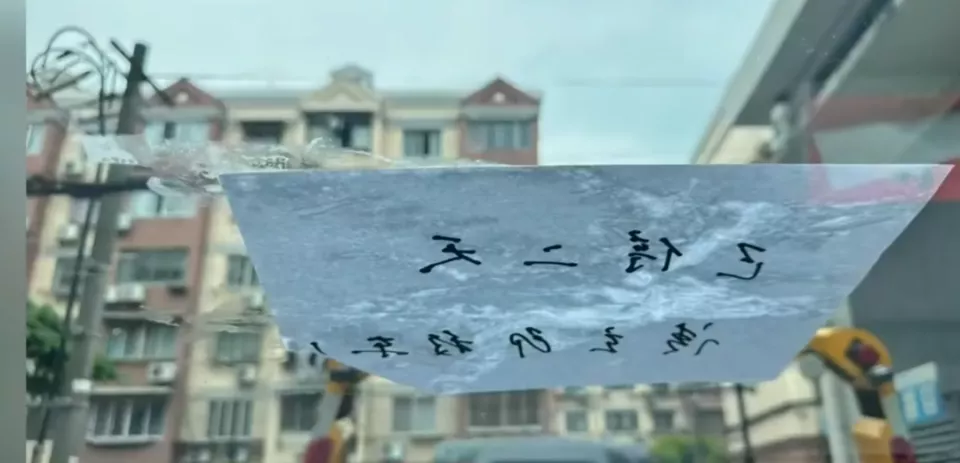 第二次,孙先生车在小区公共车位上停了2日,车的前挡风玻璃被人用胶水贴了一张A4纸,上面写着:已停2天,请立即挪车。