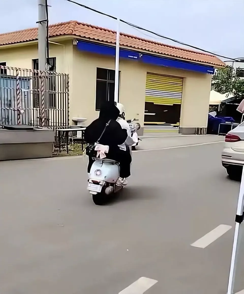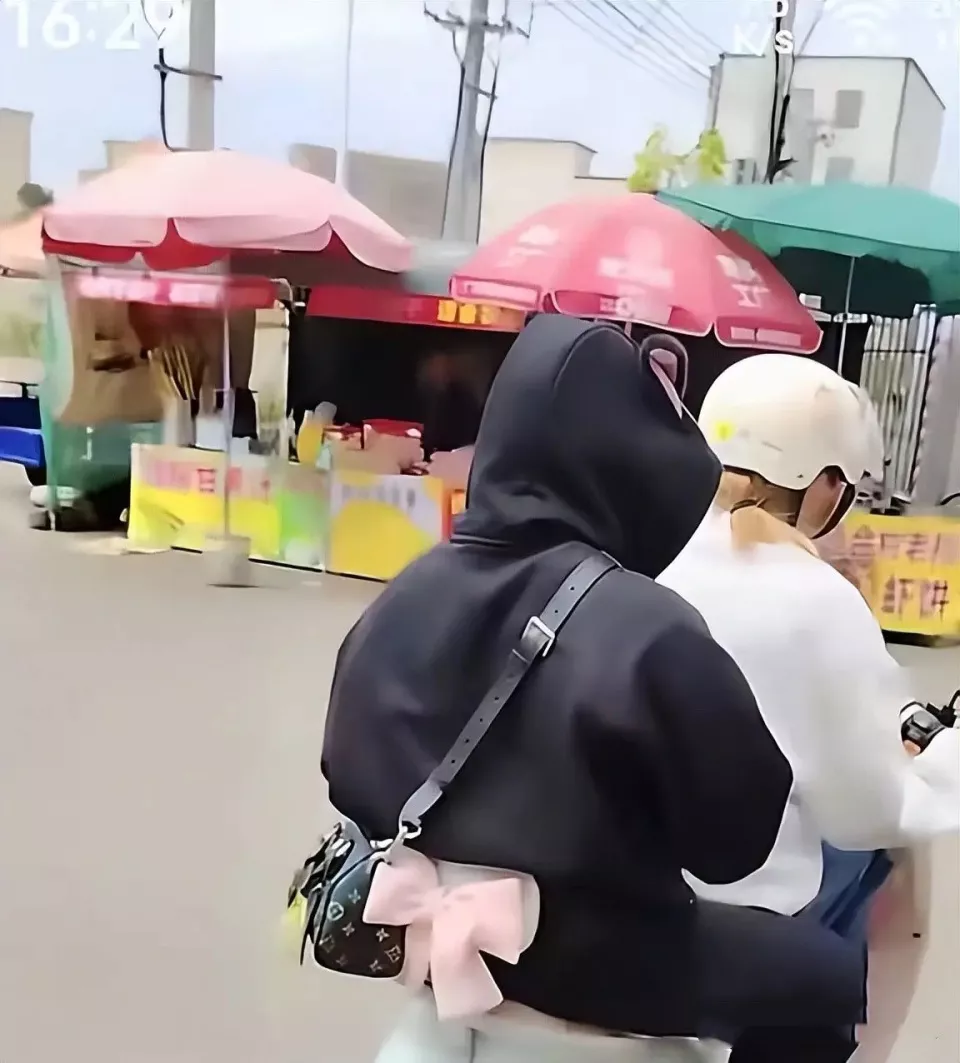 全红婵穿一身黑衣,坐在妹妹的电动车后座上,真的是好拉风啊。就连黑色的LV包包都变得好惹眼,这一身打扮真是又酷又美。