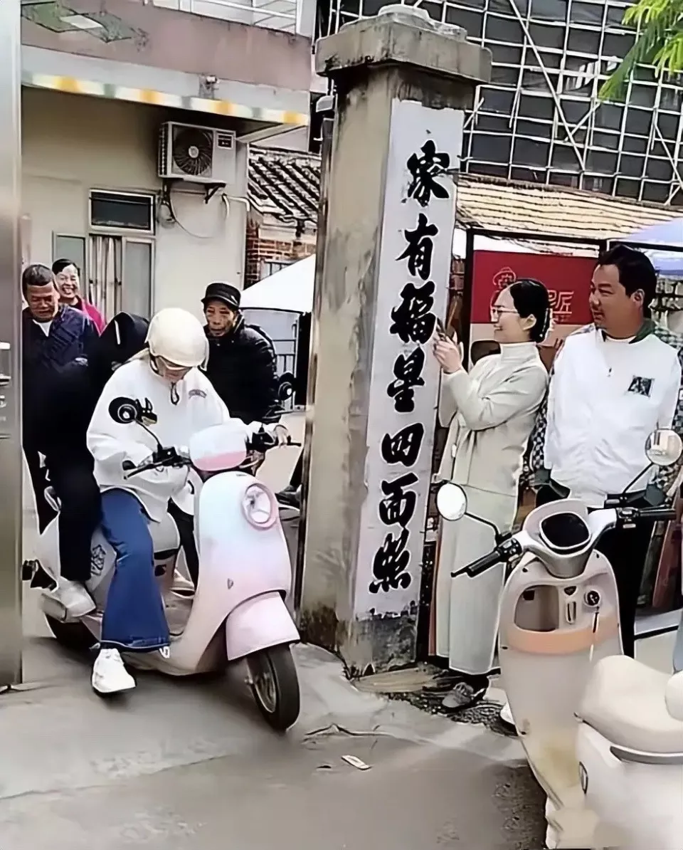 在家里小聚片刻后,全红婵和妹妹就骑着电动车去炸街了。全红婵妈妈穿了一身红色衣服,站在人群里笑容灿烂、非常的喜庆。爷爷目送全红婵和妹妹走出家门,眼神里都是不舍。