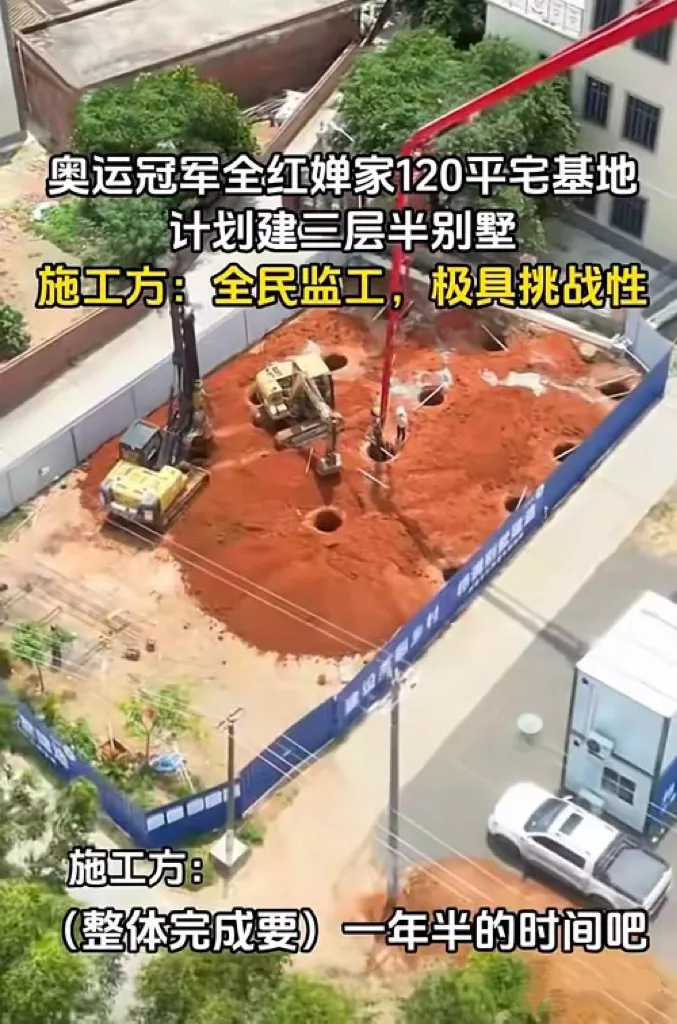 全红婵家里计划建三层半的别墅,施工方坦言在全民监工的模式下施工,压力很大、也极具挑战性。