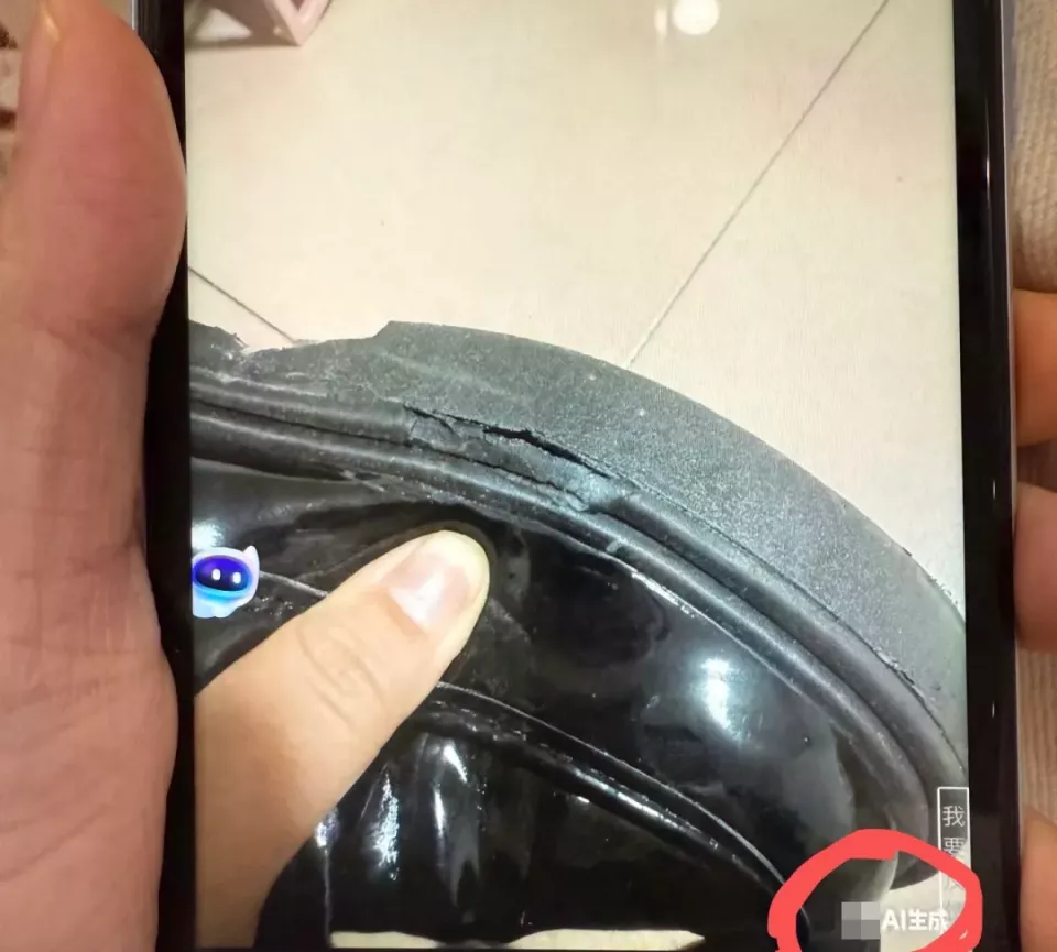 商家越看越不对劲,裂纹不合乎常理,而且脏的也太均匀了,这分明是 AI 画的假图!
