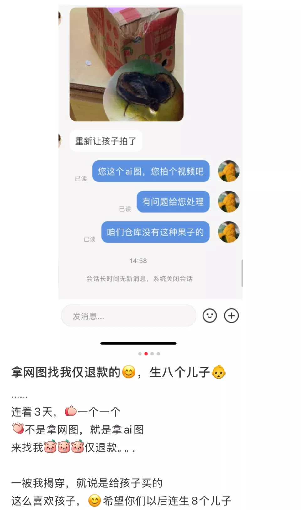 可能是快年底了,缺钱了,有人居然用 AI 图骗“仅退款”。
