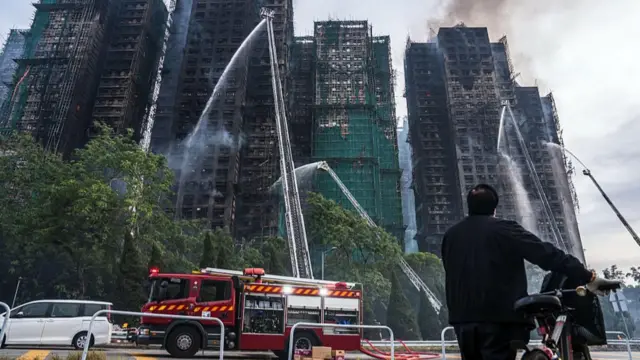 大埔区区议员梅少峰告诉BBC中文,涉事的宏福苑共有8座,全部都正在进行大维修,而当中有7座均受到大火波及,外墙棚架均受到严重焚毁,“最先起火的那一座楼,透过窗户也看到里面亦都有起火。”
