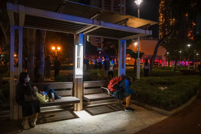 大火仍未扑灭,巿民在宏福苑附近等候