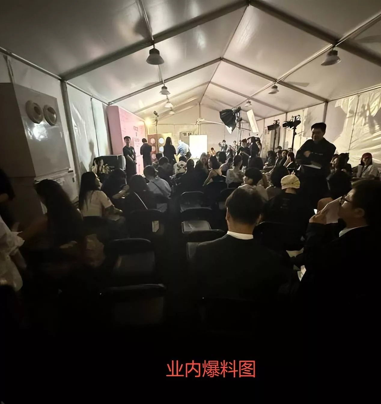 业内爆料别看盛典表面光鲜亮丽,后台简陋得像是菜市场一样。从业内曝光的现场后台照片也能看出来,当天的工作人员基本没什么休息区,大部分人都是坐在室外台阶上。