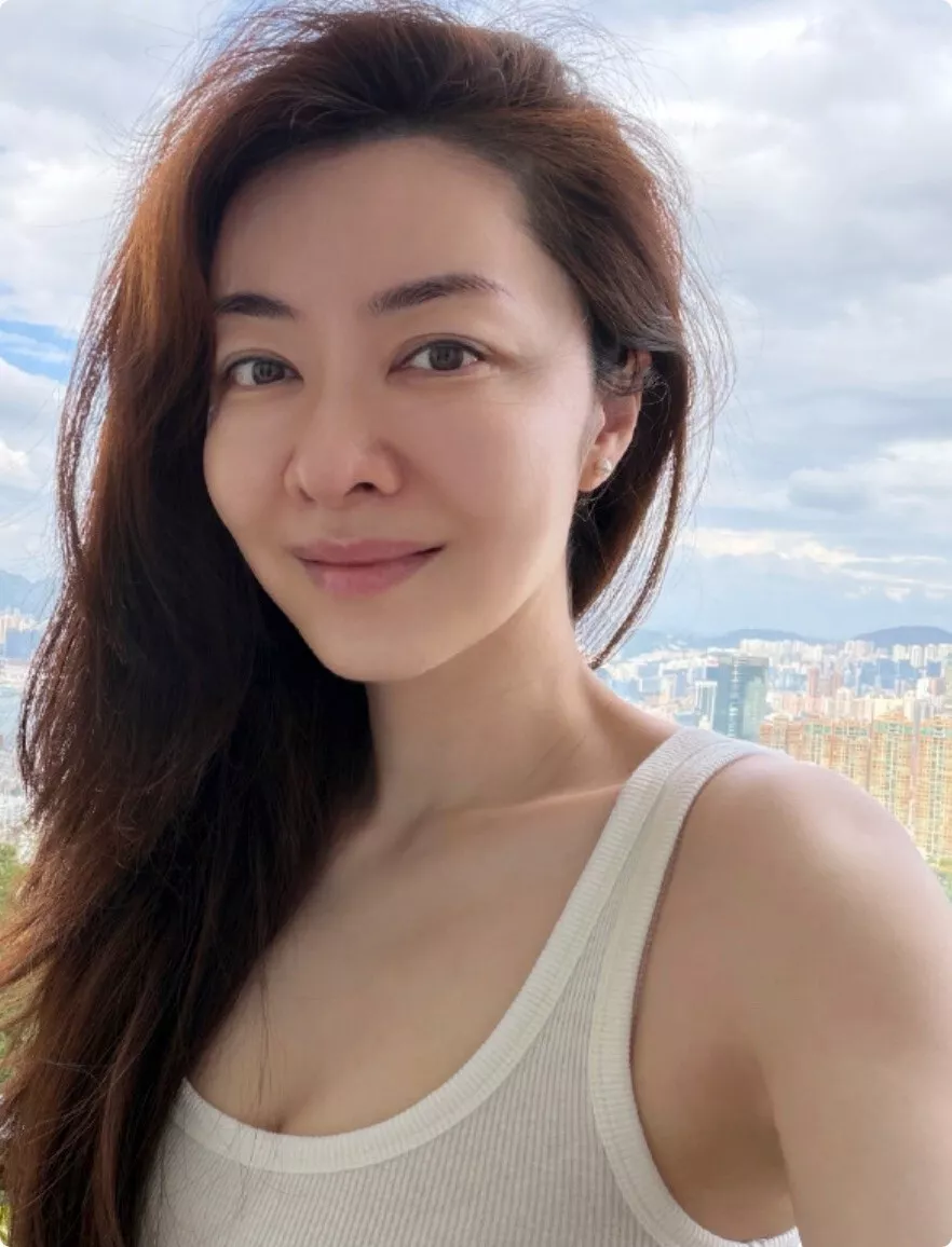 照片中,她身穿白色背心,头发柔顺地披在肩头,皮肤紧致透亮,几乎看不出岁月的痕迹。