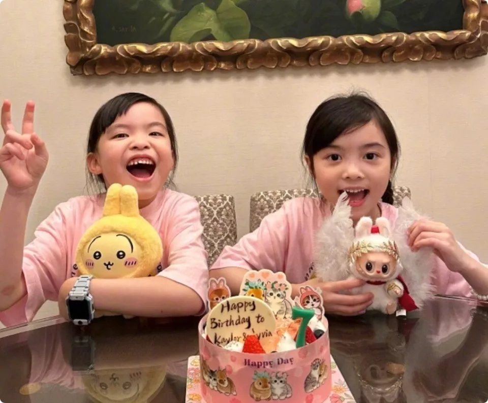 让人惊讶的不只是她的冻龄美貌,还有她那对双胞胎女儿,两个孩子越长越像爸爸郭可颂,乍一看简直是爸爸的复制粘贴。