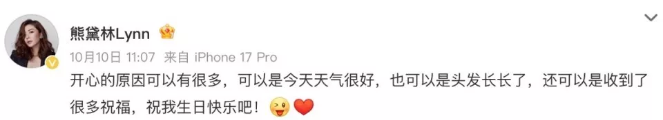 这次生日,她说“开心的原因可以有很多,可以是今天天气很好,也可以是头发变长了,还可以是收到了很多祝福。”