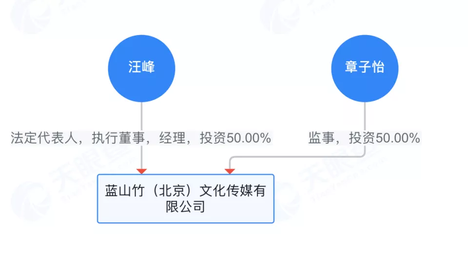 【蓝山竹(北京)文化传媒有限公司】成立于2014年,法人为汪峰,注册资本为10万元,汪峰和章子怡各持50%股份。