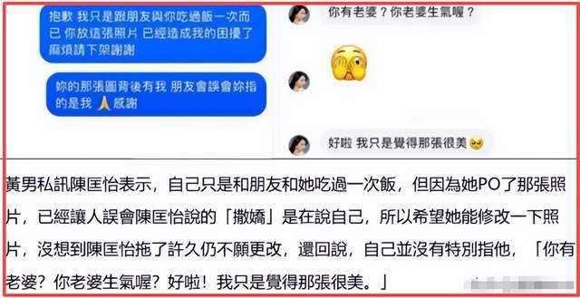 黄先生气不过,随后和记者爆料说,陈匡怡经常用言语骚扰他,还给他发穿着薄纱睡衣的照片。