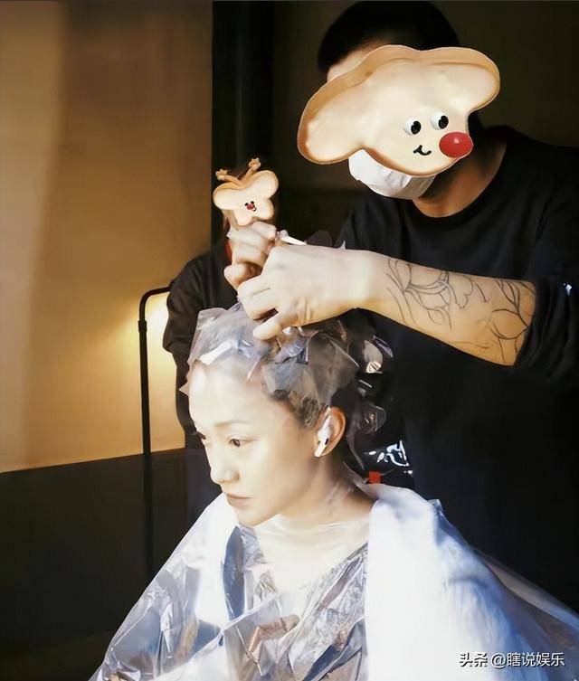 她还会分享自己在理发店染发的照片,围着眼罩坐在椅子上,发型师正在为她涂抹染膏。
