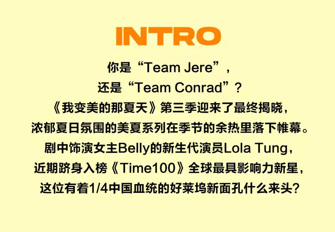 “我从Belly身上学到了很多东西,从她的勇敢和看着她冒险的经历中也学到了很多东西。” Lola Tung曾在采访中谈及这一路的成长,出道首部作品就斩获超高影响力,就在前不久她还跻身《Time100》全球最具影响力新星榜单。