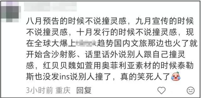 在网友看来,市面上随便一数,包括霉霉在内,至少有六位歌手出过以奥菲莉亚为主题的歌,周杰伦早不说晚不说,非要等到霉霉新歌有了热度,才跳出来说“撞灵感”了。