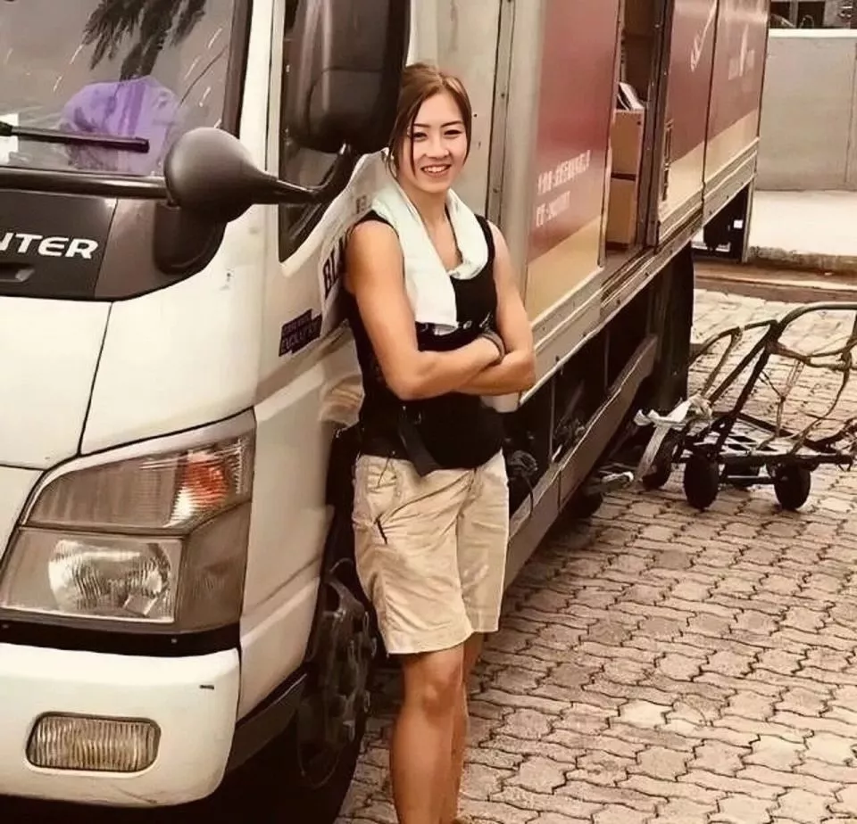 2017年,有网友逛街时偶遇正在搬货的朱芊佩,瞬间被她清秀的样貌和硬朗的肌肉线条吸引。