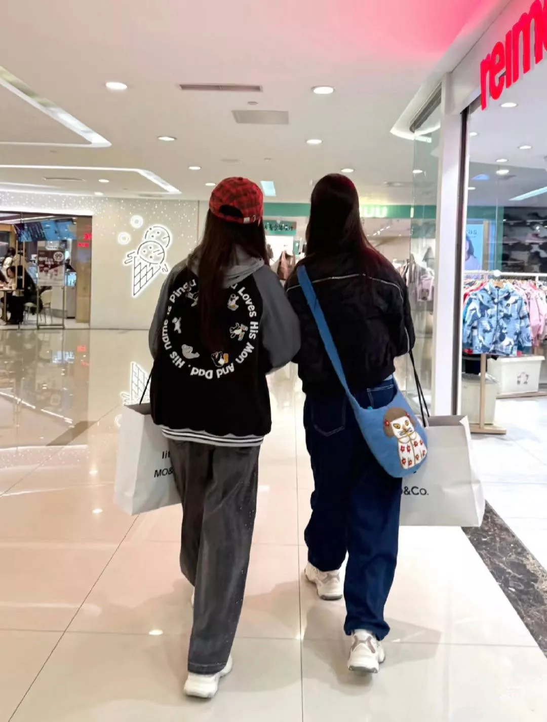 最后姐妹俩一人选了一大包衣服,开开心心的走在前面,赵子琪在身后拍下了俩女儿的背影。姐姐还是个子稍微高一点,妹妹毕竟年纪小、矮那么一丢丢。