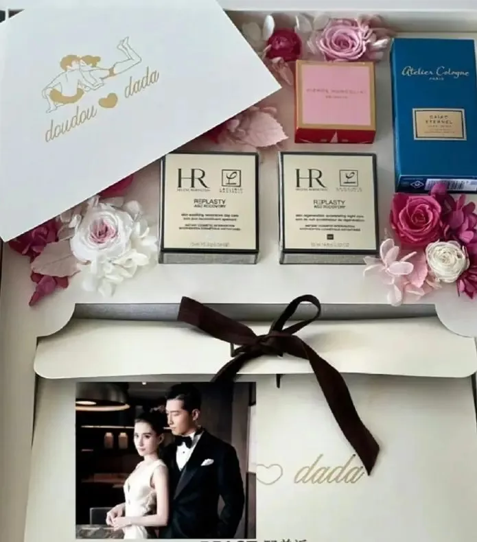 宾客的伴手礼盒里有真丝眼罩、拖鞋,大牌化妆品、香水,顶级巧克力等,一套总价值就高达5000元,送100套出去就要花费50万。