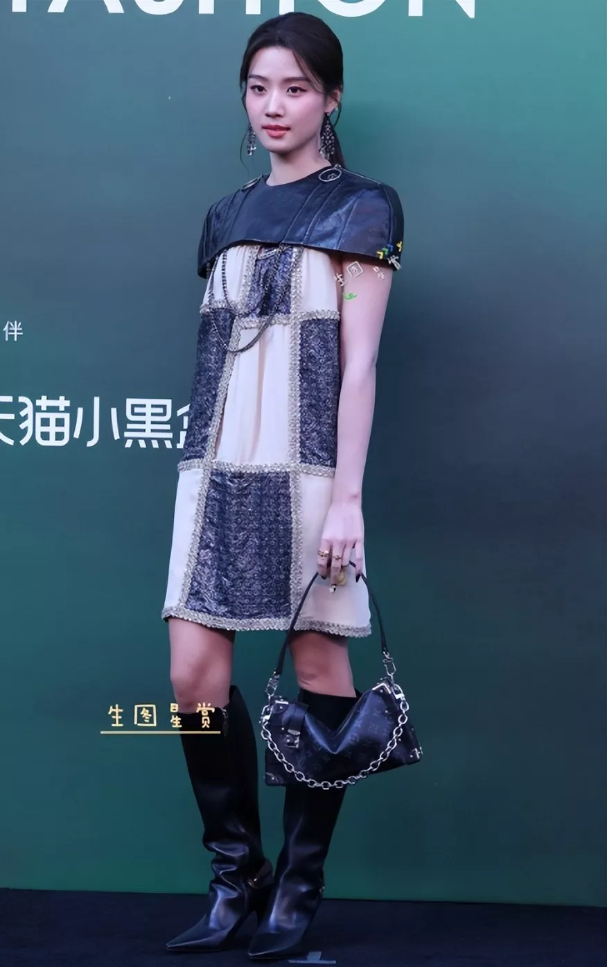 长靴虽然能弥补腿部线条的不足,却过于沉闷,再加上发型也太平庸,没有一处亮眼的搭配。