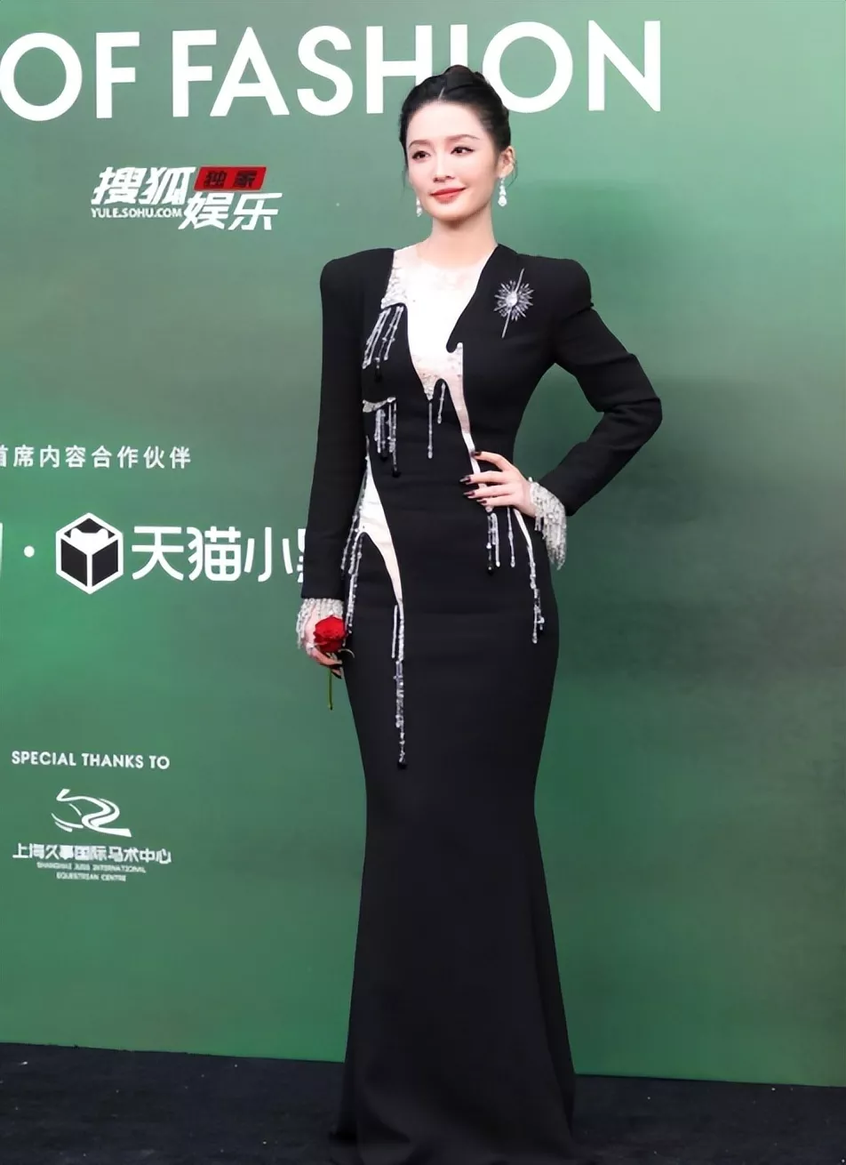 李沁在造型上,早就摒弃了“公主甜美风”,贴身黑色鱼尾礼服,将她凹凸有致的身材勾勒得淋漓尽致。