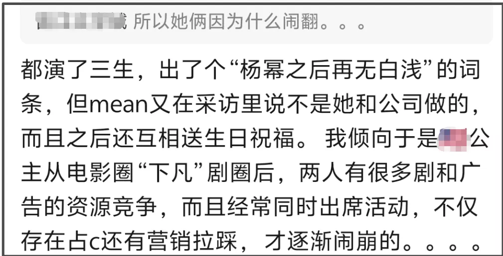 不止一位网友起了好奇心,深扒杨幂和刘亦菲过往恩怨情仇,会发现她们并非因为某件具体的事情决裂,背后是逃不开的资源争夺,是始料不及的地位颠倒,更是娱乐圈真正的残酷现实。