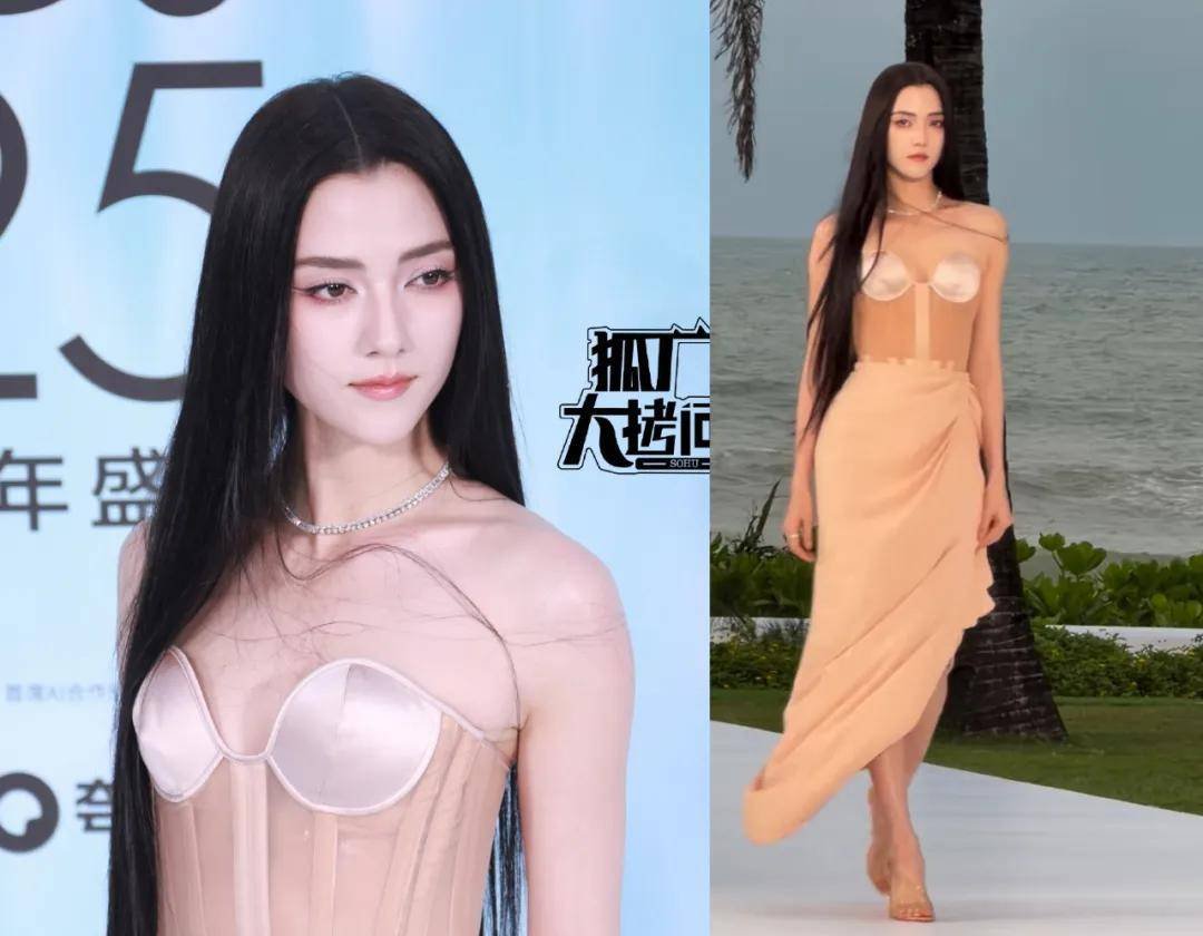 真正的网红易梦玲则在尽力摆脱网红感,她穿了一条黑色蕾丝礼服,造型是有辨识度的,但脸的辨识度有待提高,有些角度看起来像baby,有时候又有点像孔雪儿。