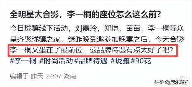 据悉品牌方提前三天就确认了李一桐的座位,还特意调整了背景板logo位置,这种待遇连刘嘉玲都没有,难怪网友质疑: