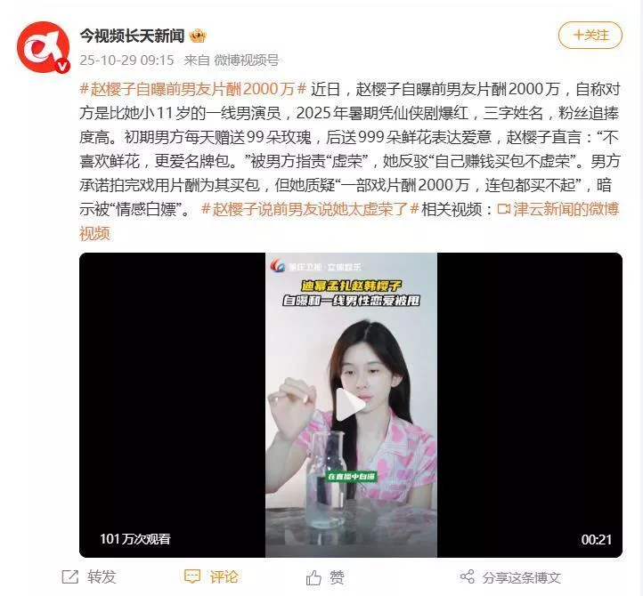 赵樱子自曝前男友片酬2000万,网友:她说的到底是谁?
