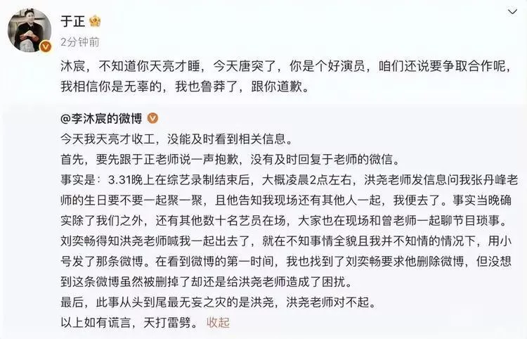 李沐宸也紧急发博讲明事情的来龙去脉,证明了洪尧的清白。