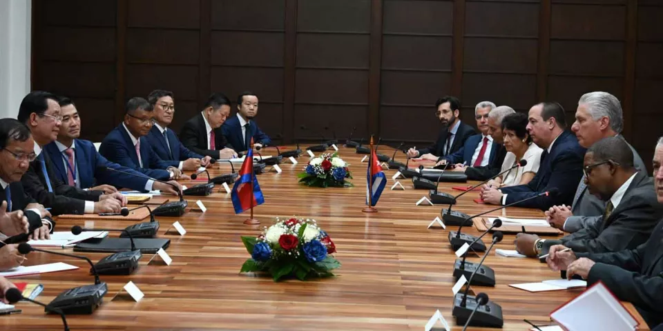 2022年9月,陈志(左排最里)随同洪森在古巴参与会议