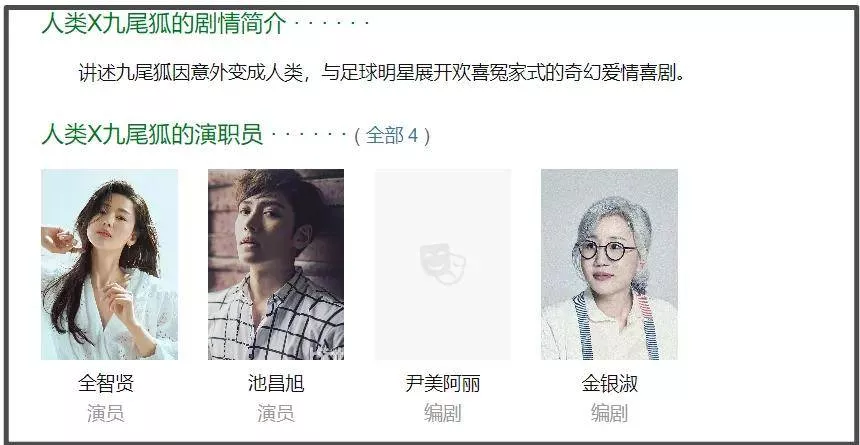 至于《人类X九尾狐》,则是一部爱情偶像剧,讲述的是九尾狐因意外变成人类,与足球明星成为欢喜冤家的故事,整部剧还埋了一个暗雷,那就是剧本看似由韩国名编剧金银淑操刀,实际上是编剧助理尹美阿丽代笔。