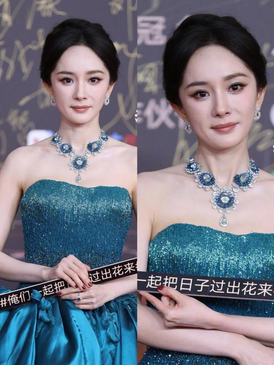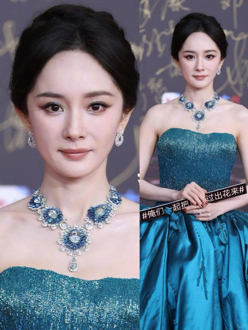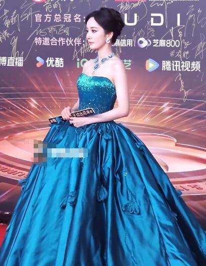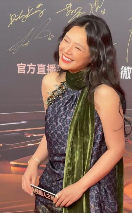 她穿着一身孔雀蓝抹胸礼服压轴出场,瞬间把场子盘活了!