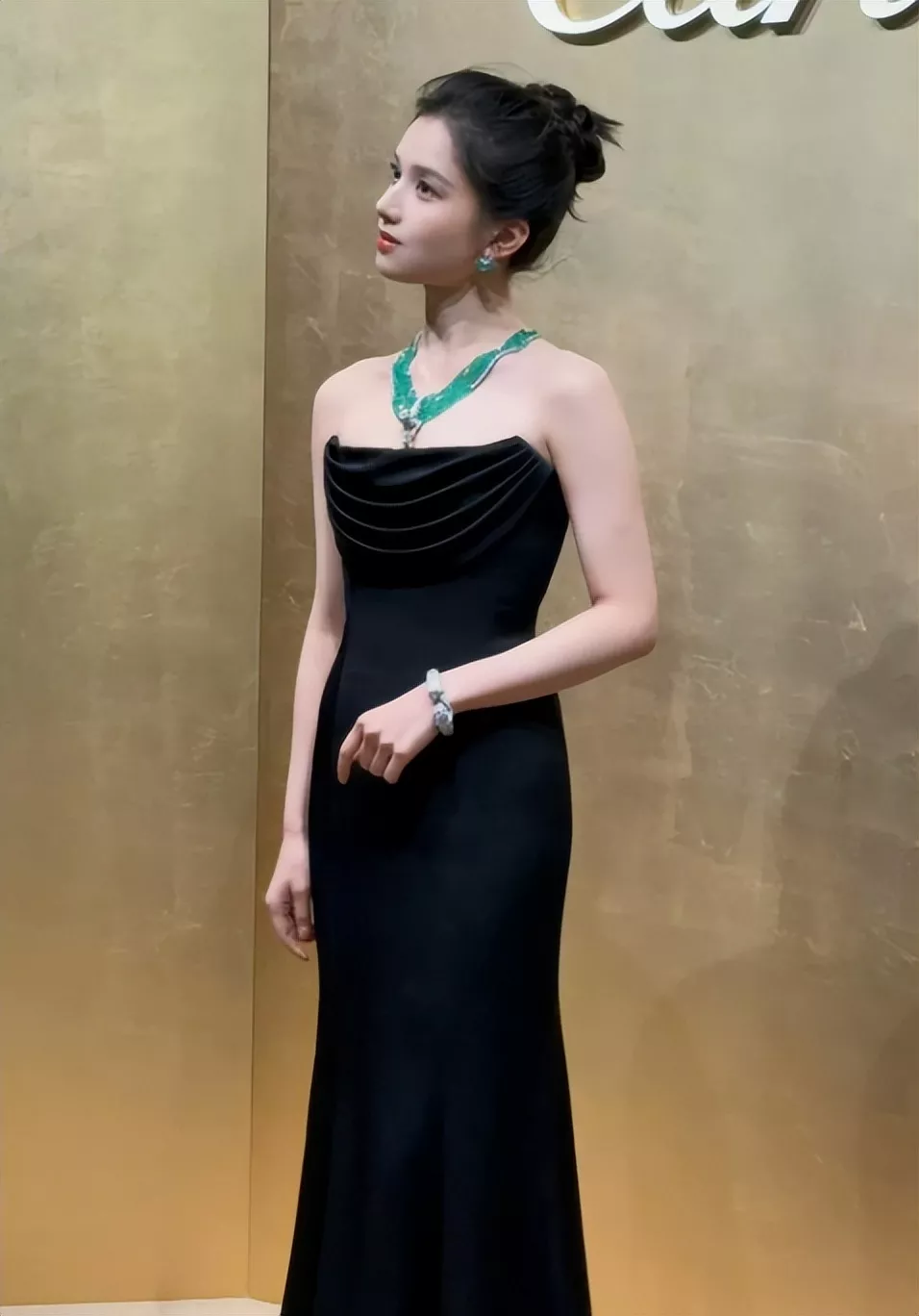 这次她还选择了一条黑色抹胸礼服,整个人就如同纸片人一样轻盈纤瘦。