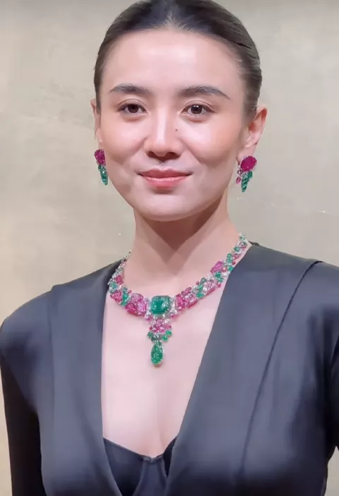 正因为如此,她才能够驾驭镶嵌800多颗哥伦比亚祖母绿的高级珠宝,也不会被这样的饰品压住自己的风头。
