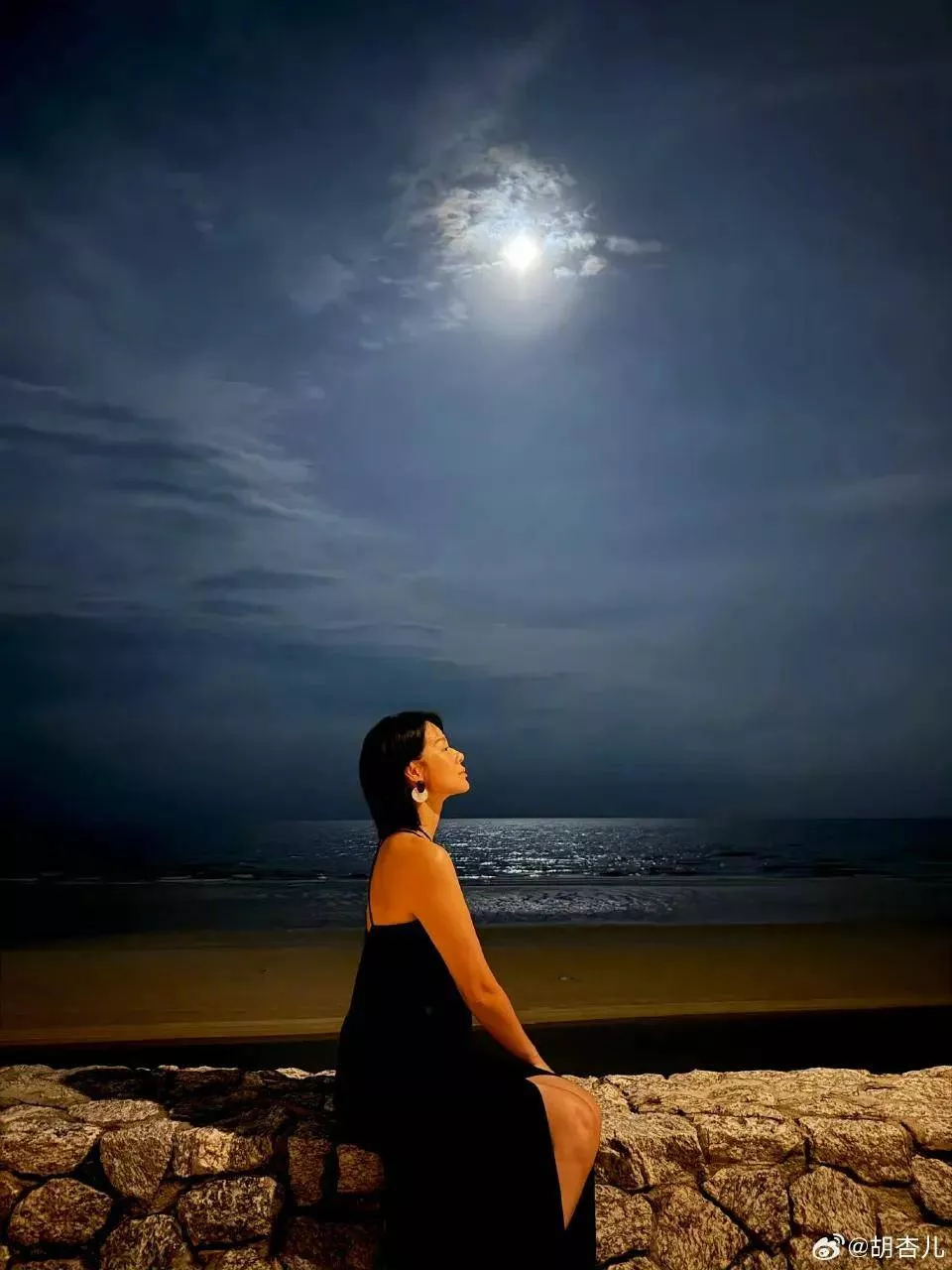 在照片中,胡杏儿穿着一条黑色吊带长裙,展现了她度假风的温柔与女人味。李乘德则穿着一件白色衬衫和灰色长裤,整体造型休闲又自在,完全散发着轻松的氛围。两人在海边享受着浪漫的烛光晚餐,整个场景洋溢着温馨与惬意,浪漫氛围十足。