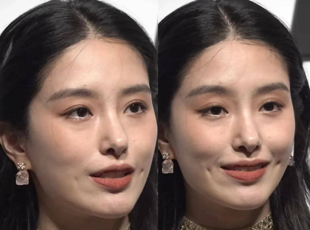 朱珠的怼脸生图,无论是五官还是皮肤状态都透着精致,感觉修图都多余了。