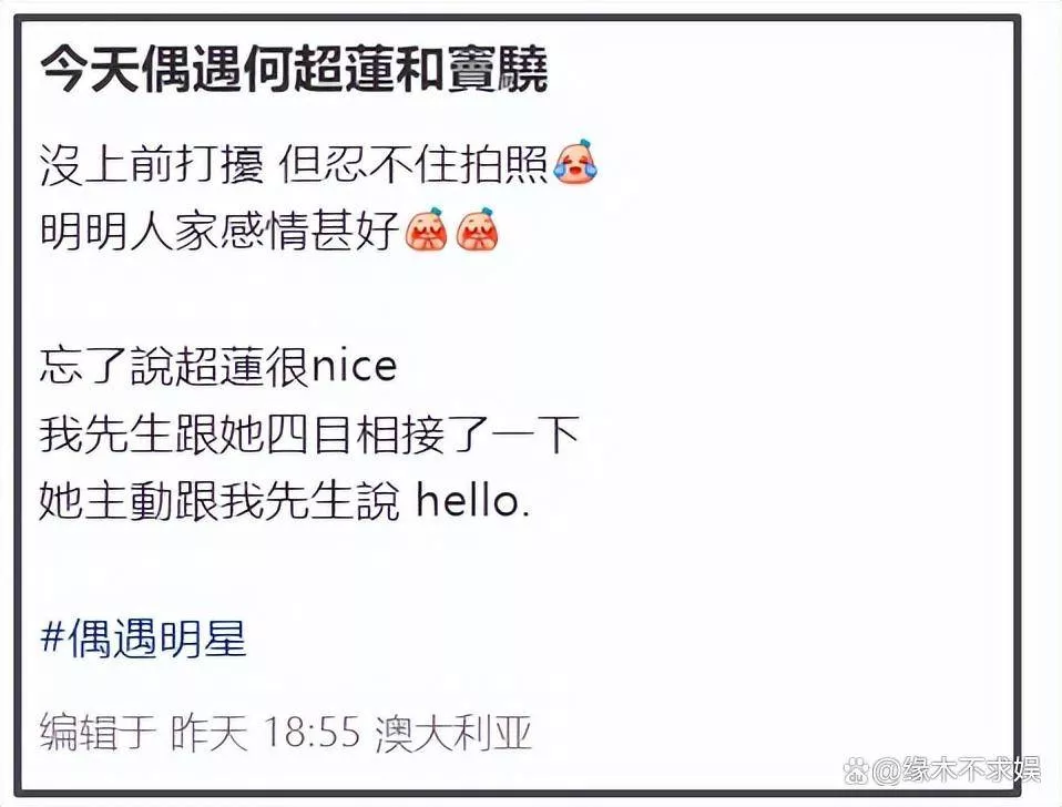 与此同时,有澳洲网友称也遇到过两人,甚至看见他们牵手同行,笑得很甜,气氛十分融洽。还有人爆料称在餐厅目睹他们亲吻,这些画面似乎彻底推翻了之前的裂痕传闻。