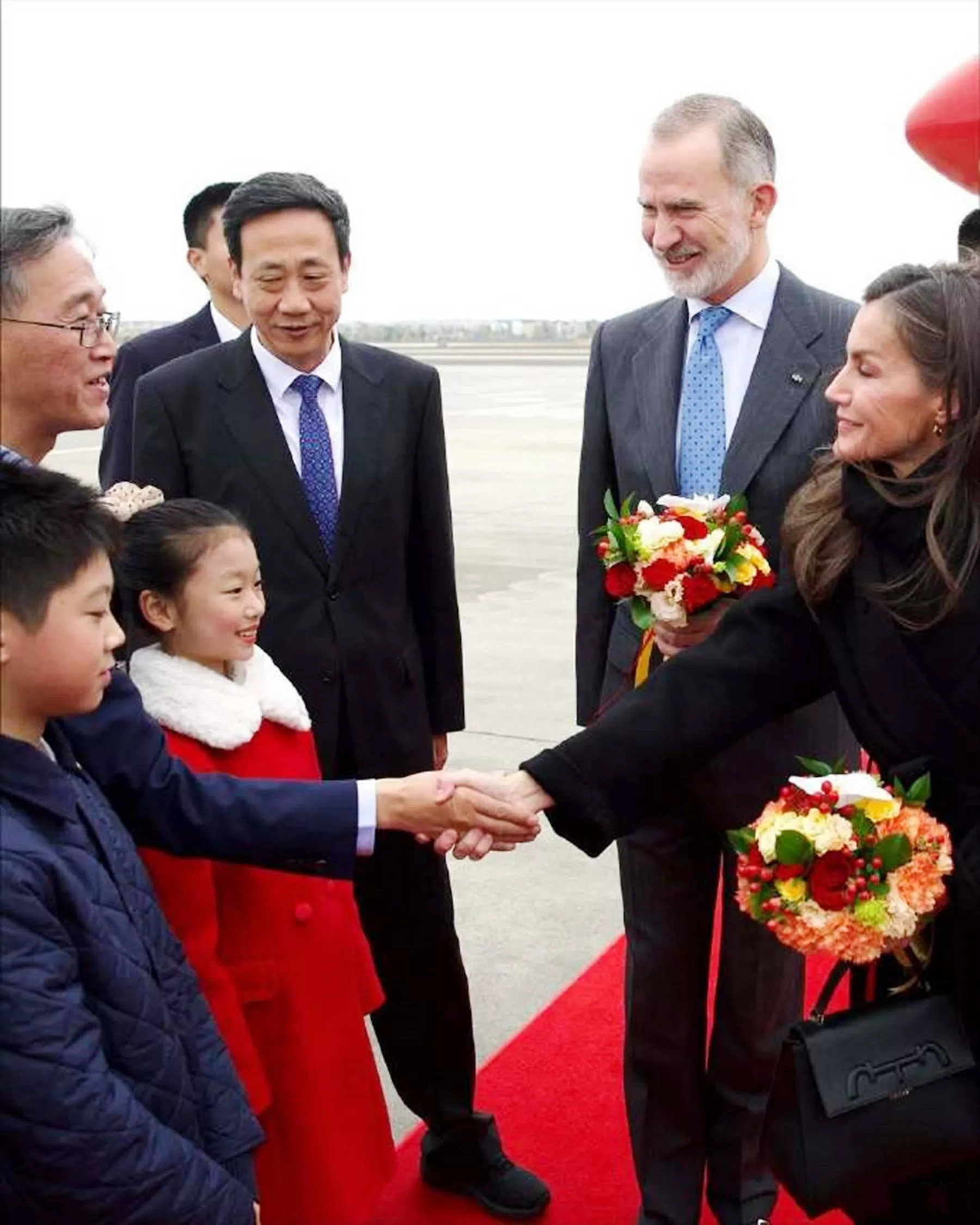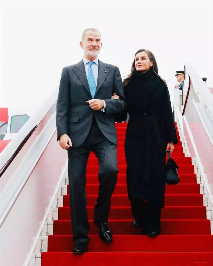 11 月 10 日的成都机场,阳光正好。费利佩国王与莱蒂西娅王后走下舷梯时,指尖相扣的瞬间,成了镜头里最温暖的注脚——他们没有更换出发时的造型,国王的黑色西装笔挺依旧,王后的深色大衣优雅如初,这份 “不刻意的默契”,恰如诗人聂鲁达笔下“爱情不是突击,是细水长流的同行”。