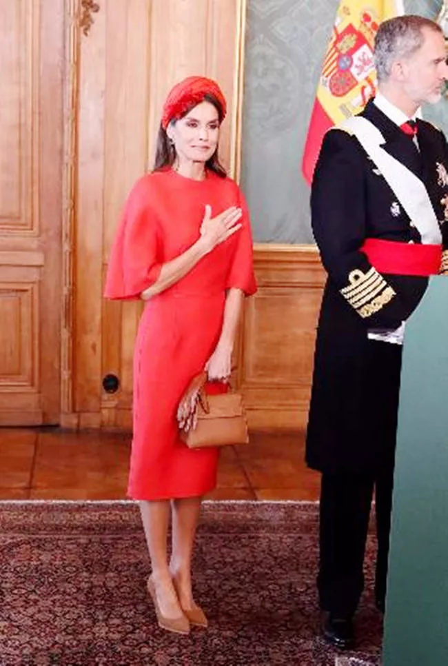 莱蒂西娅王后的一袭红色连衣裙,成了成都之行里最亮眼的符号。“红色是心跳的颜色,是跨越语言的共鸣。” 这款介于暗红与亮红之间的裙装,不仅精准呼应了 “中国红” 的喜庆意象,更以巧妙的设计展现出王后的身材优势。