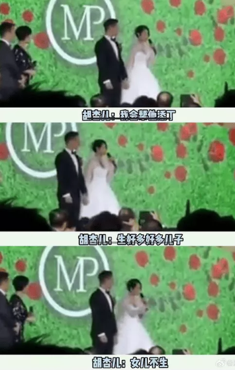 在婚礼上,胡杏儿对丈夫说我要为他添丁,生好多好多儿子,女儿不生。一句话掀起千层浪。