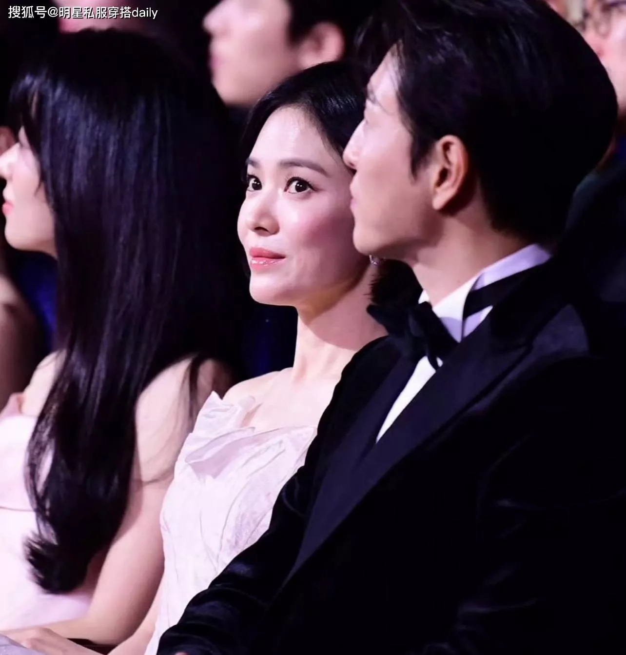 又被宋慧乔美到了!穿粉色礼服坐在河道英身边