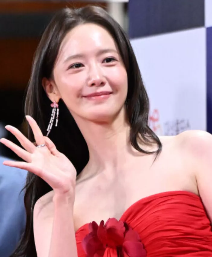 不出所料,在韩媒的灯光下,林允儿的“水光肌”异常明显,妆容无比清透甚至有点寡淡了。