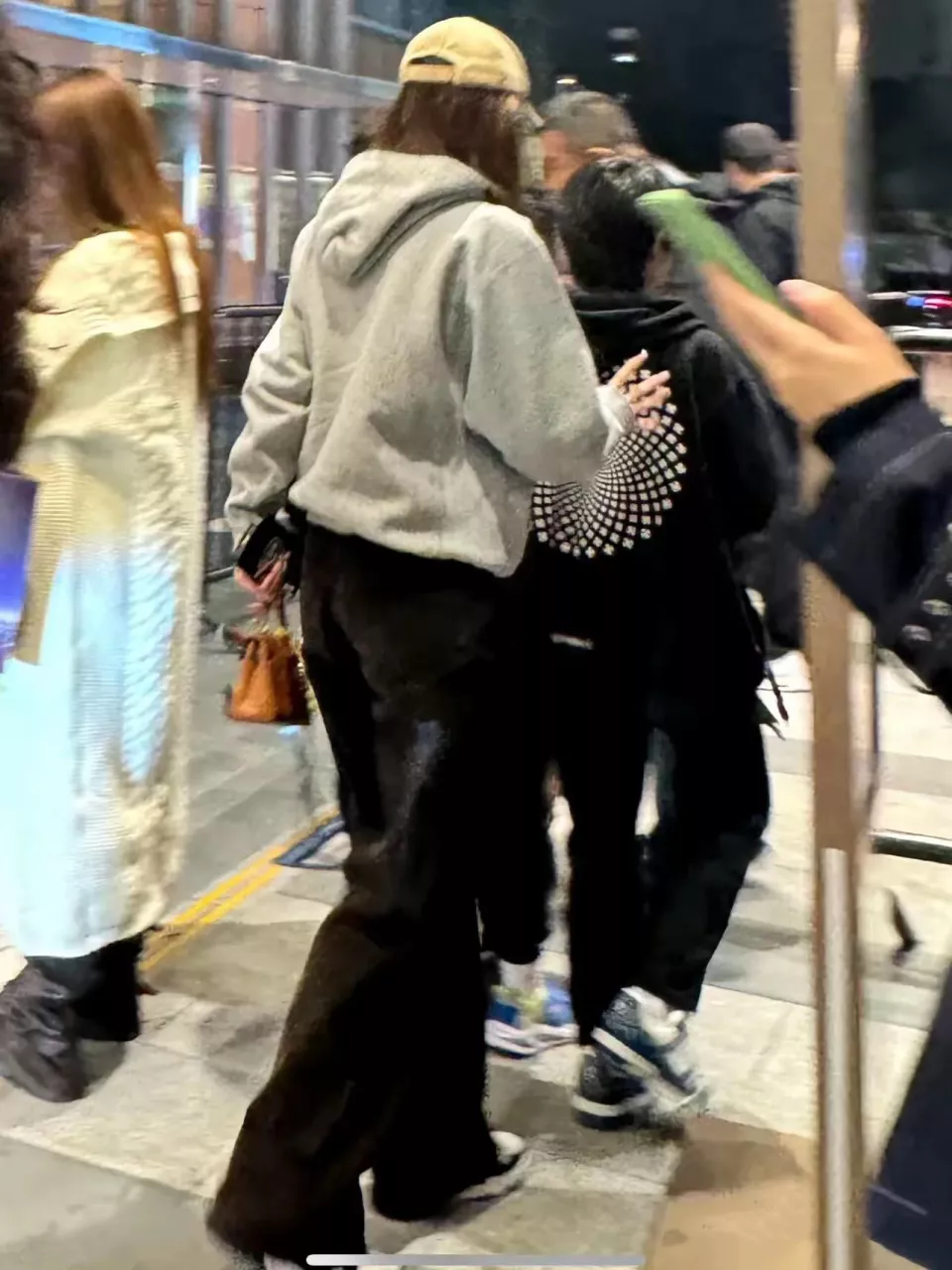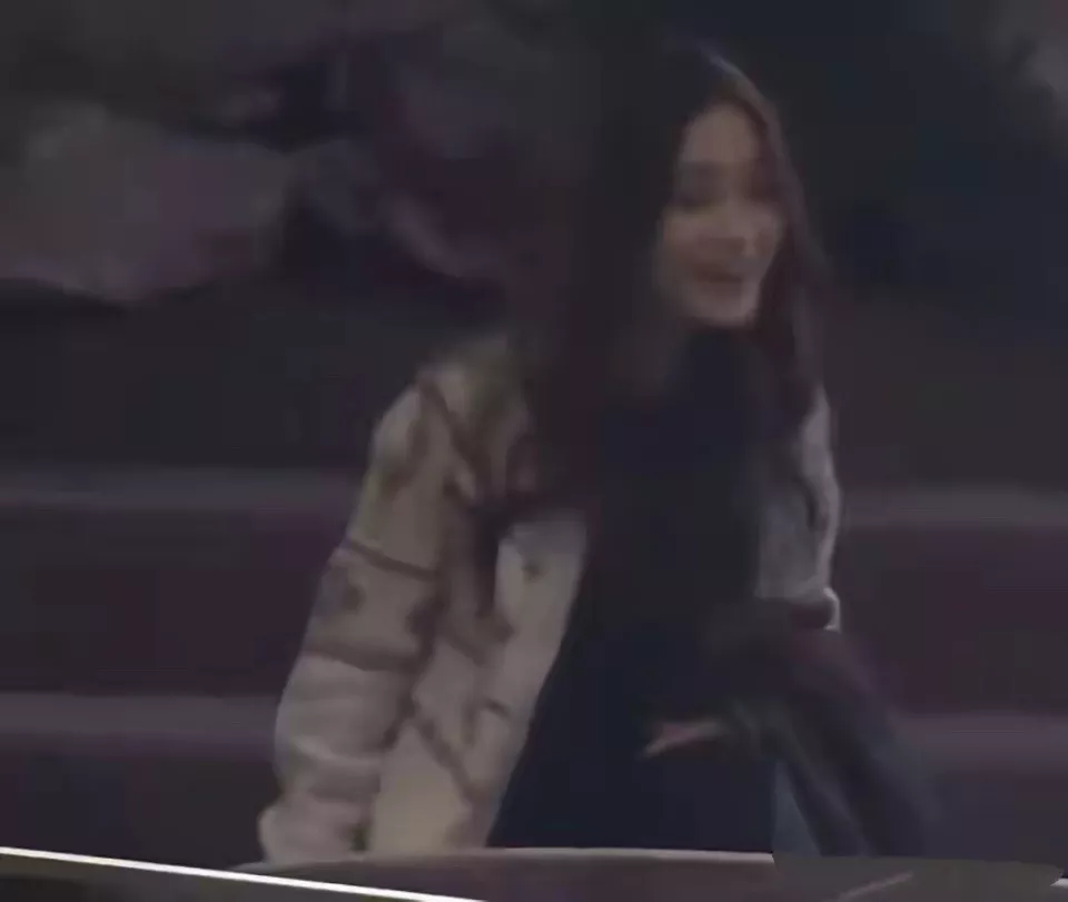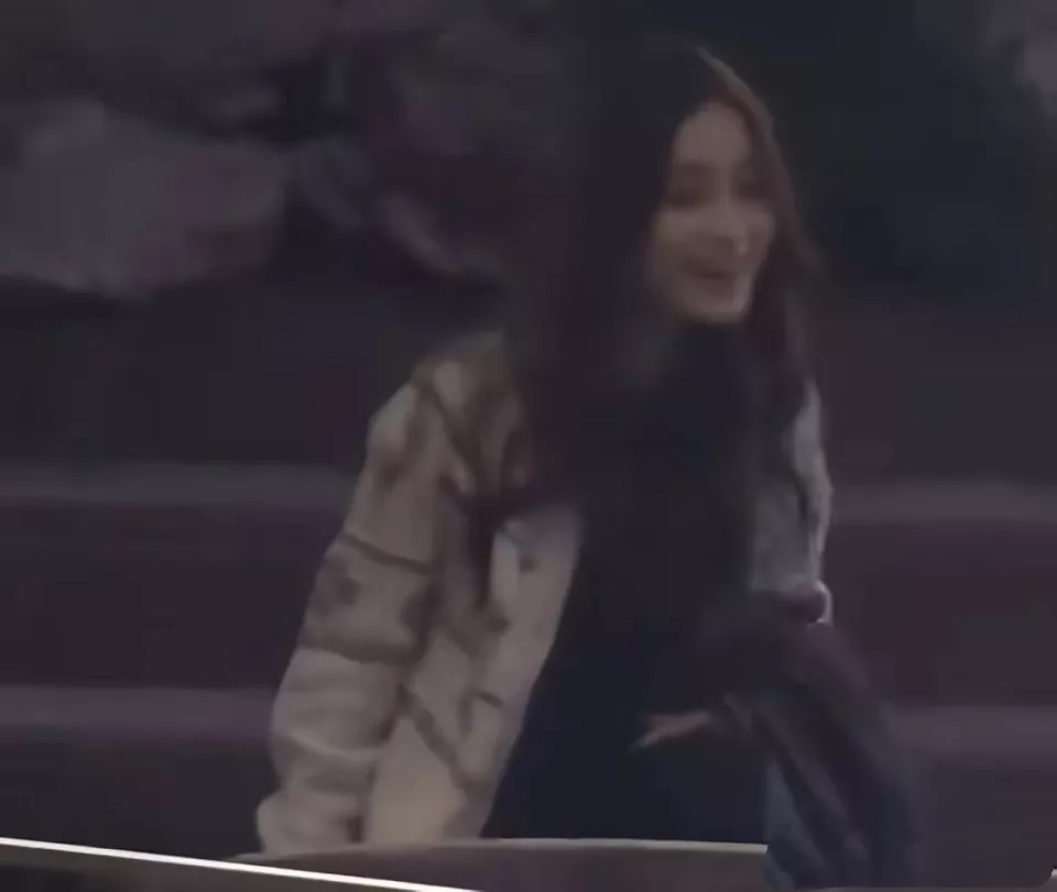 杨颖穿着白色开衫,内搭是黑色打底衫,长发披肩温柔漂亮。即便是高糊照片、都掩不住她的美貌。