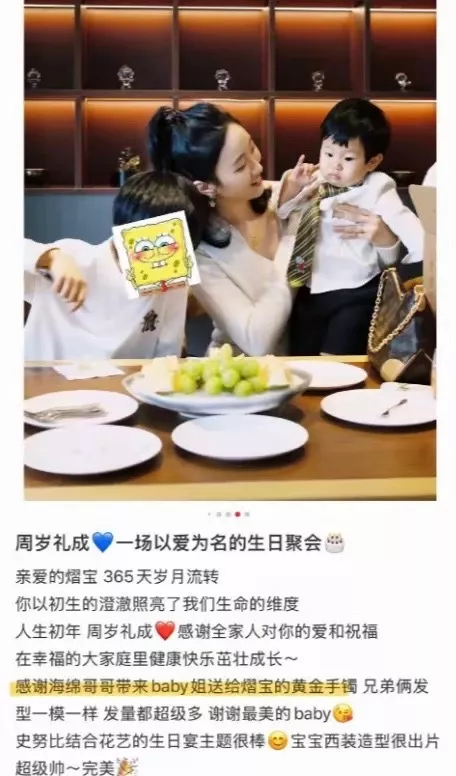 尤其是在黄晓明外甥的周岁宴上,小海绵不仅到场了、还带着杨颖准备的礼物来了。杨颖给小家伙准备了黄金手镯,出手还是一如既往的大方。