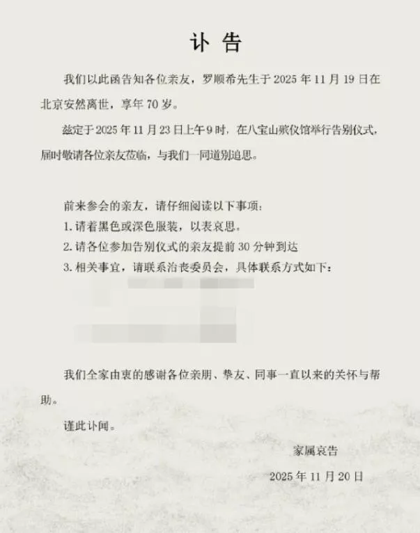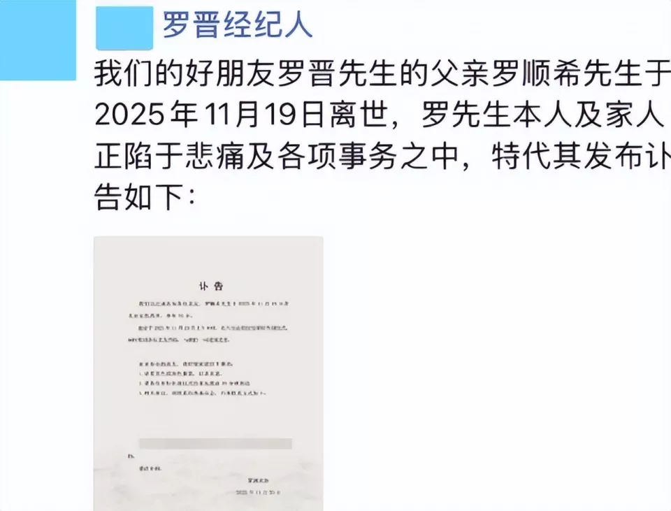 然而,让人没想到是,罗晋经纪人突然发声,代罗晋本人发布了罗晋父亲的讣告。