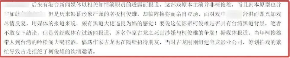 在这篇资料中,该笔者还提到柯俊雄有黑背景,古龙之死可能就与此人有关。
