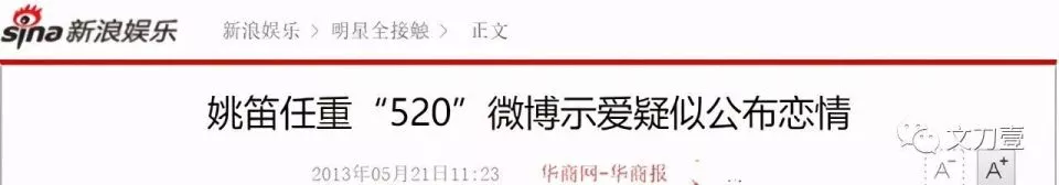 同样是在2013年,5月20日,姚笛与任重在社交平台示爱,两个人疑似公布恋情。